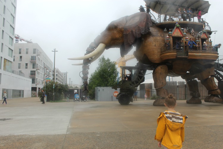 When we planned our trip to France this summer we knew we wanted to make it a holiday of two halves. The first part (where we are now) would be a relaxing week in a gites in the Dordogne region. Time to reconnect as a family after a hectic few months, swim in the lakes and rivers, wander around French markets. The second part (where we’re heading next) would be a bit more lively, in a chalet on a Yelloh! holiday park with multiple water slides, kids’ clubs and a bar. The problem was, though, that we needed a stopover point to glue the holiday together. This is why we ended up spending 18 hours in Nantes and visiting Les Machines de I’ile.