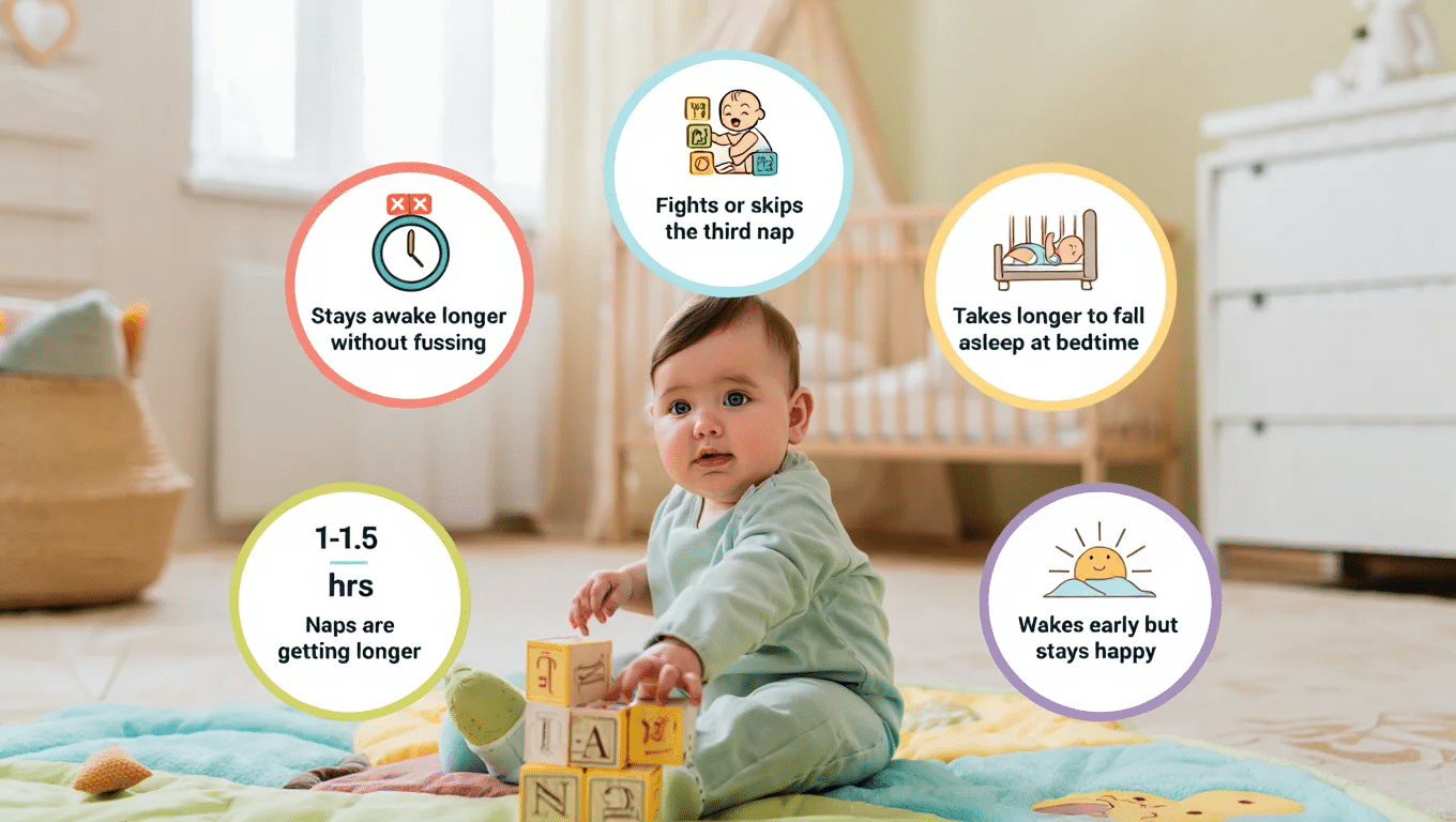 Following your baby’s cues rather than a strict calendar age will help make this sleep schedule change smoother for everyone.