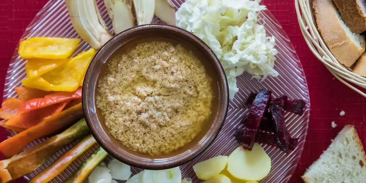 An Italian dipping sauce made from garlic, anchovies, olive oil, and butter.