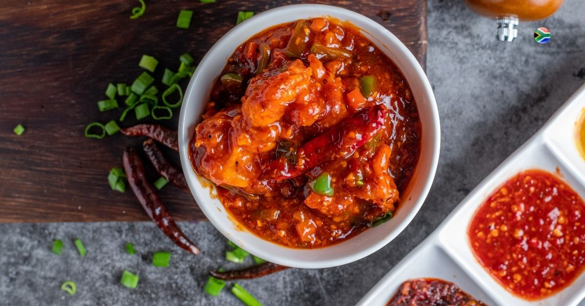 Chakalaka is a spicy and tangy South African relish made from onions, tomatoes, bell peppers, carrots, and beans.