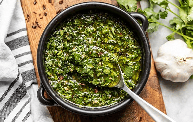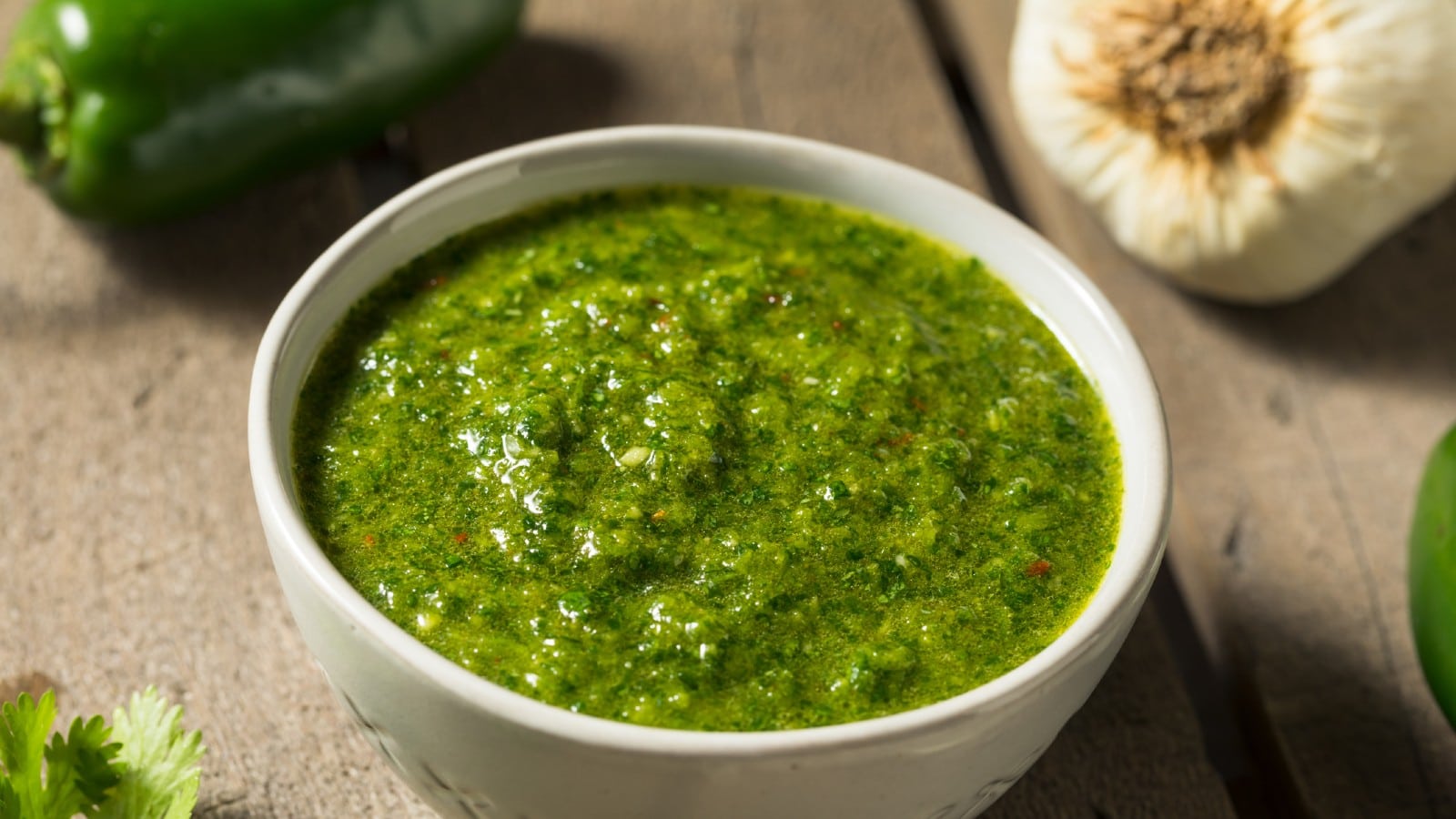 Chimichurri is a vibrant green sauce that originated in Argentina and Uruguay.