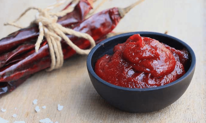 Gochujang has a thick, paste-like consistency and a deep red color. It is a staple in Korean cuisine, used in dishes like bibimbap and tteokbokki and as a marinade for grilled meats.