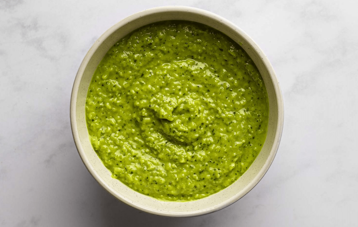 The result is a thick, paste-like sauce with a vibrant green color and a bold, zesty flavor.