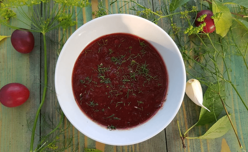 The plums used in tkemali can be either green or red, with green plums producing a more tart sauce and red plums resulting in a slightly sweeter version.