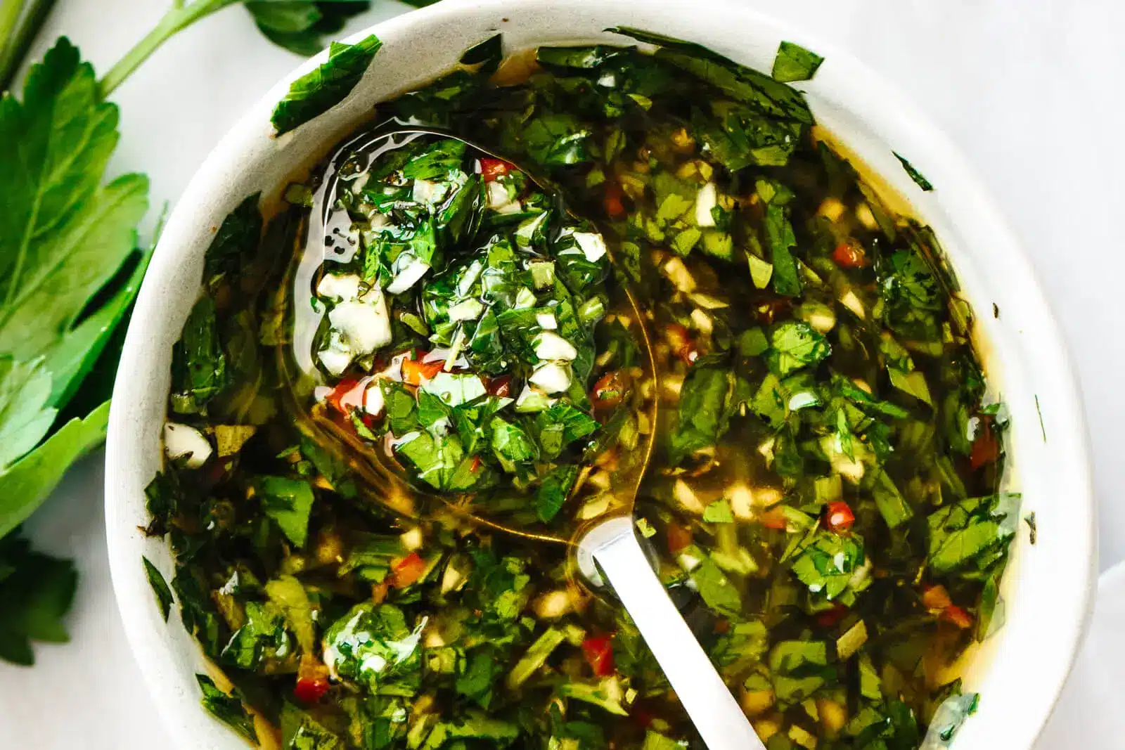Ingredients: Parsley, garlic, olive oil, vinegar, chili flakes, salt