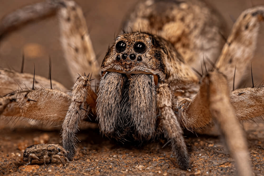 It ambushes prey from concealment, grabbing victims with its modified front legs and injecting digestive enzymes to liquefy its prey’s insides.