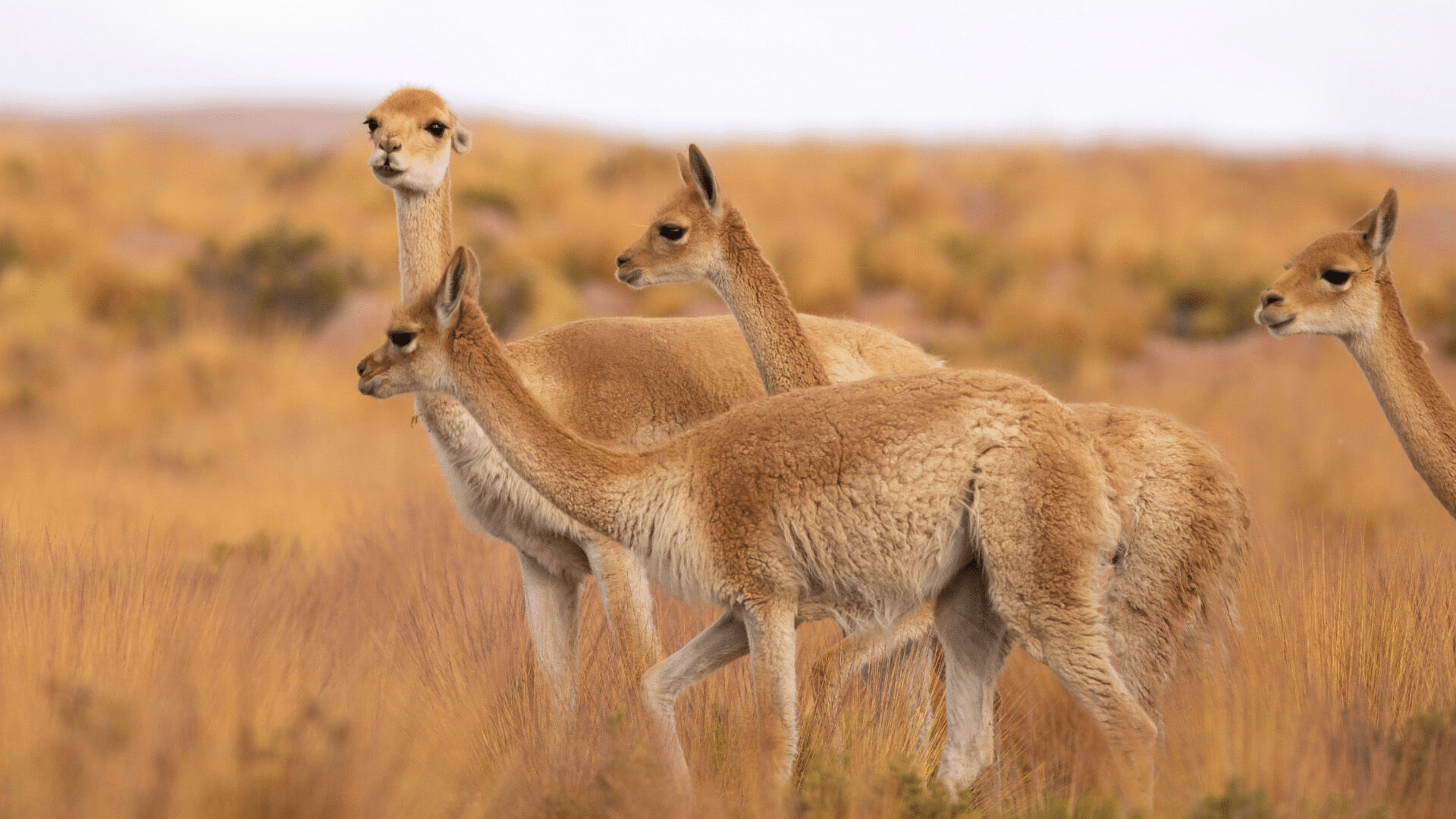 The Vicuña has a slender body, graceful neck, and cinnamon-colored back, and it produces the finest wool of any animal.