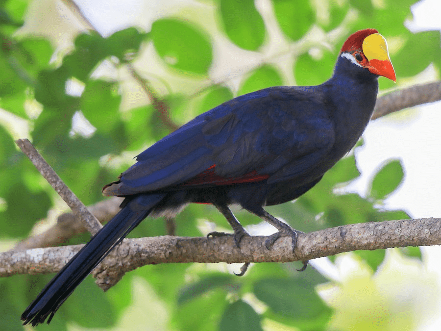 The Violet-backed Starling has stunning sexually dimorphic plumage: males with iridescent violet back and white underparts, females with brown streaking.