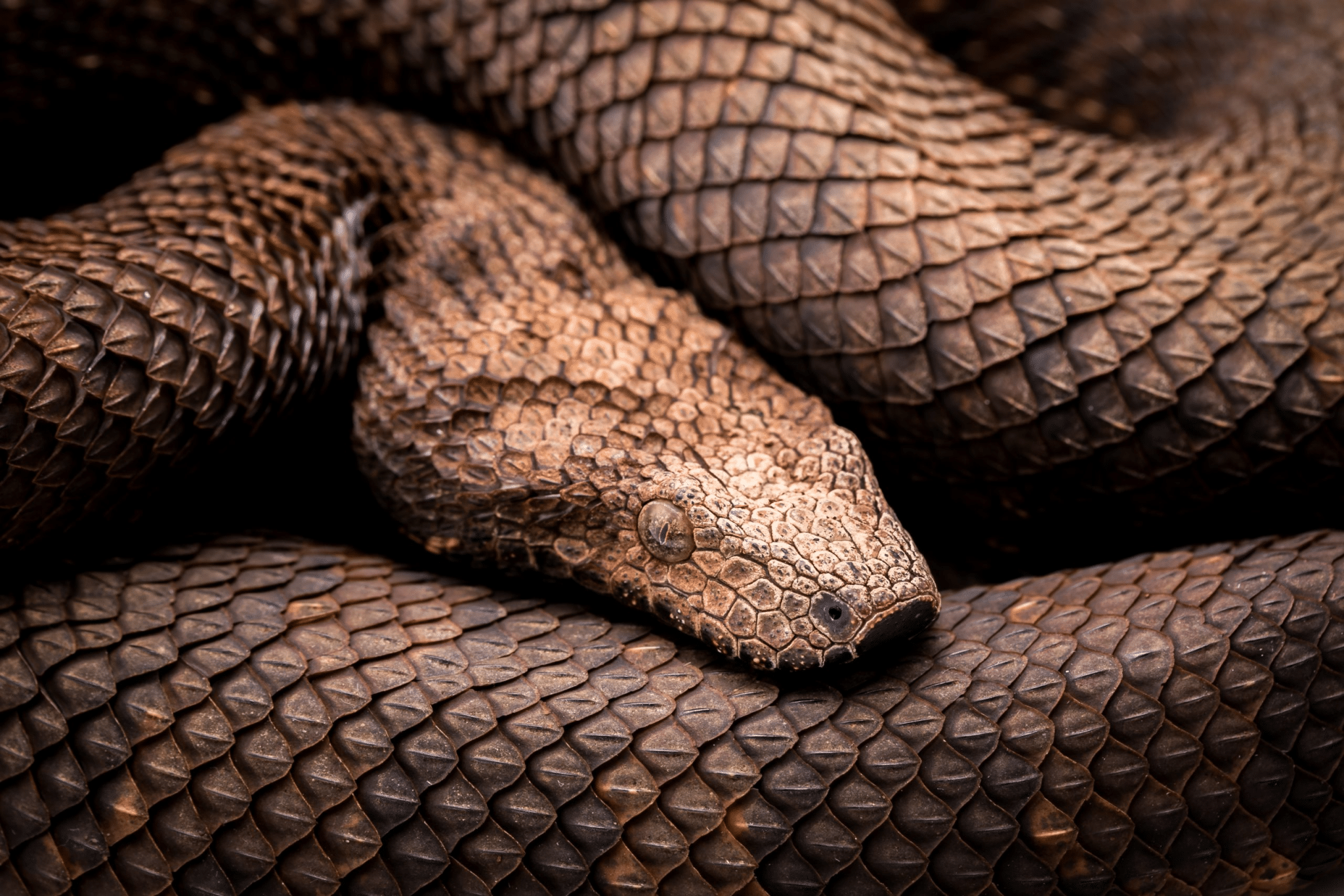 The Viper has a triangular head, vertical pupils, and in many species, heat-sensing pits between eyes and nostrils.