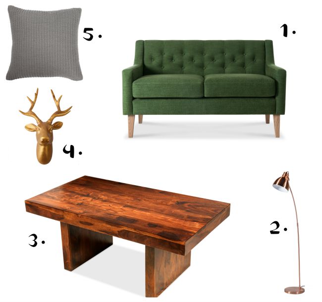 You can’t get much more autumn than green and copper. I love the way the two colours play off each other, and I think the dark wood of the Sheesham coffee table really draws the palette together.