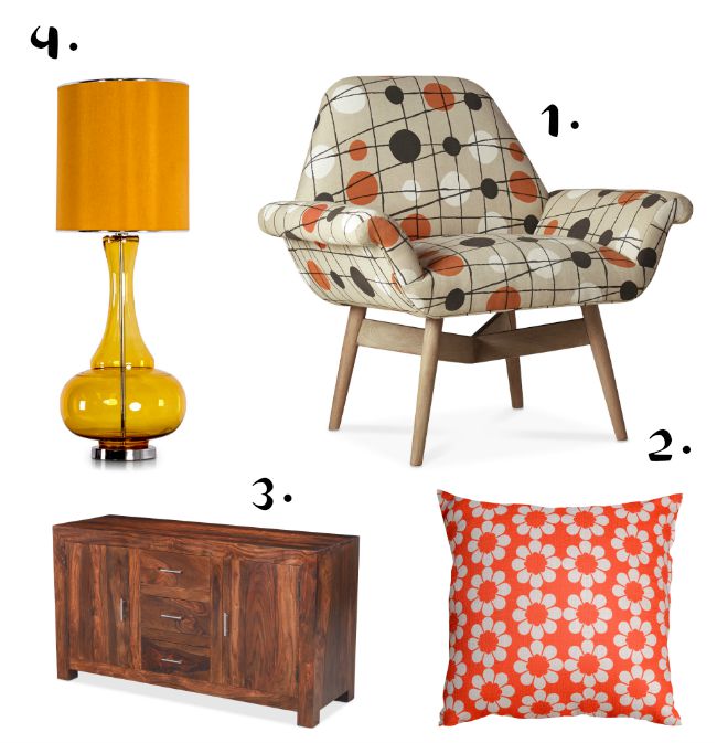 I’m a sucker for a bit of retro and there’s something about that 70s print and orange that feels especially cosy at this time of year. In the summer I’m often drawn to candy pinks, turquoise and yellows, but at this time of year I prefer the earthy, bold orange and oatmeal combination. Again, the Sheesham wood cabinet compliments the mid-century colourway perfectly – plus, it would be especially handy for storing all the random toys that seem to collect in our living room!