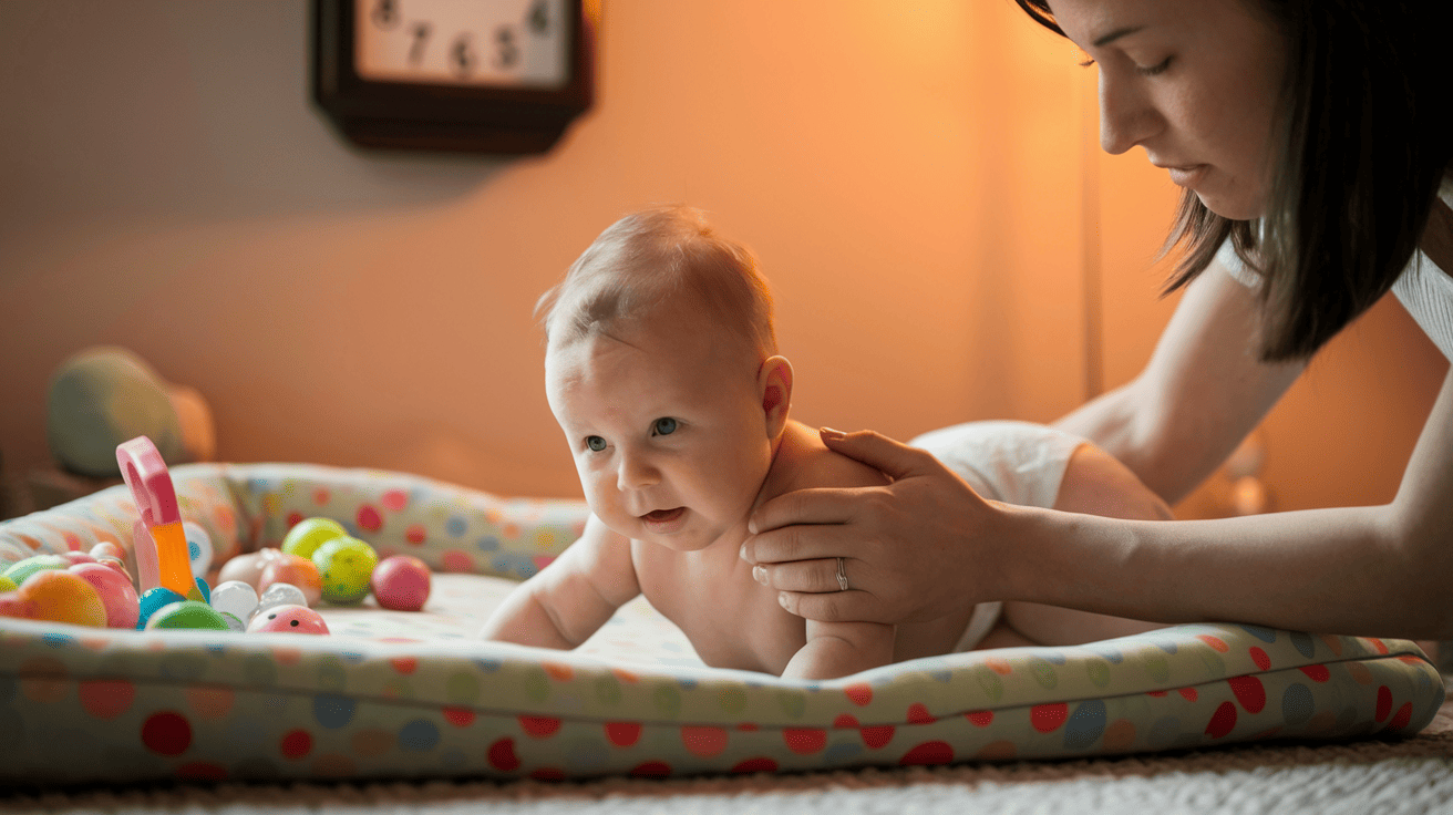 - Try different surfaces – some babies prefer firmer floors, while others like softer mats.
