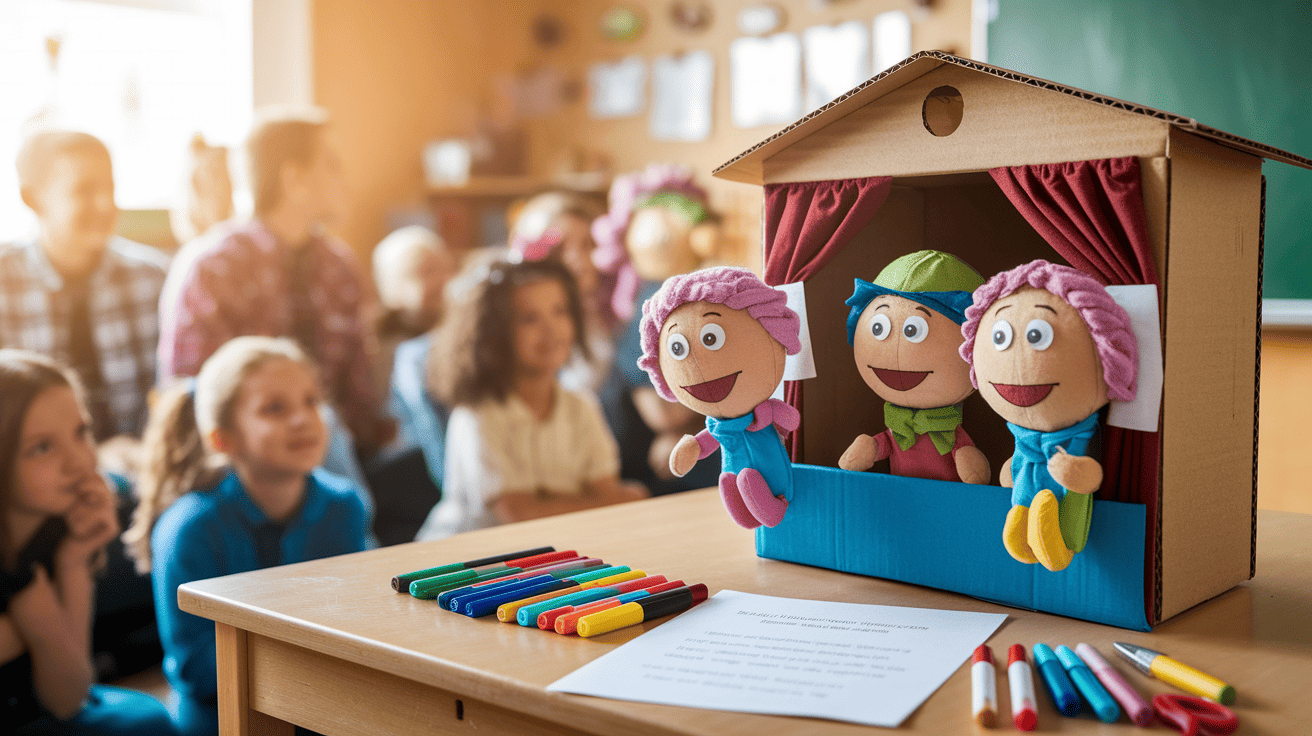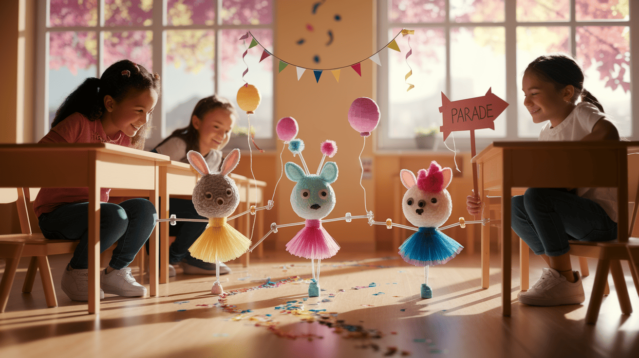 Construct simple puppets using straws, paper, and string to create a mini parade performance.