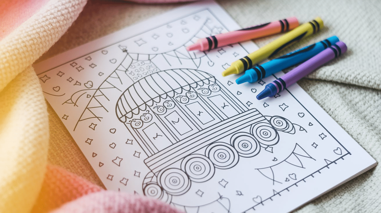 Create detailed line art suitable for coloring that captures the excitement and complexity of parade floats.