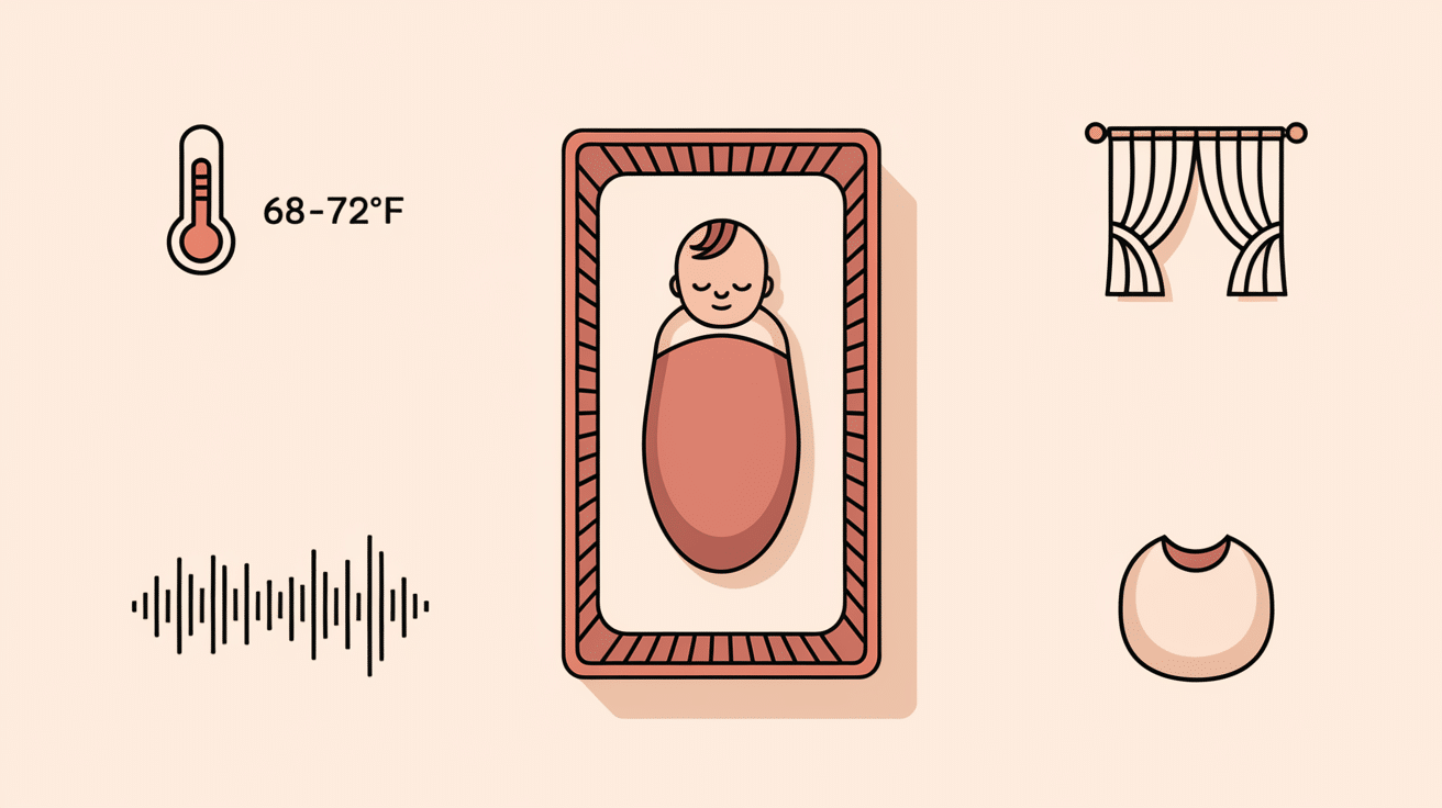 Temperature: Keep the room between 68-72°F (20-22°C). Babies sleep best when they’re not too hot or cold.