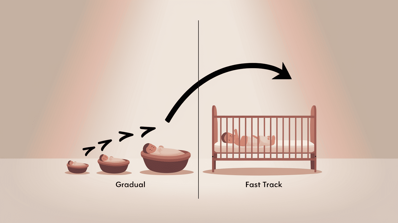 There are two main approaches to the bassinet-to-crib transition: gradual or all-at-once.