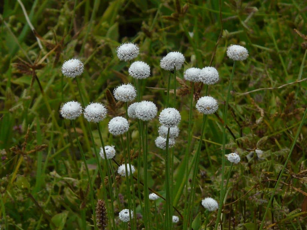 Eriocaulon, or Pipewort, features small, white, button-like flowers and is typically found in wetlands.