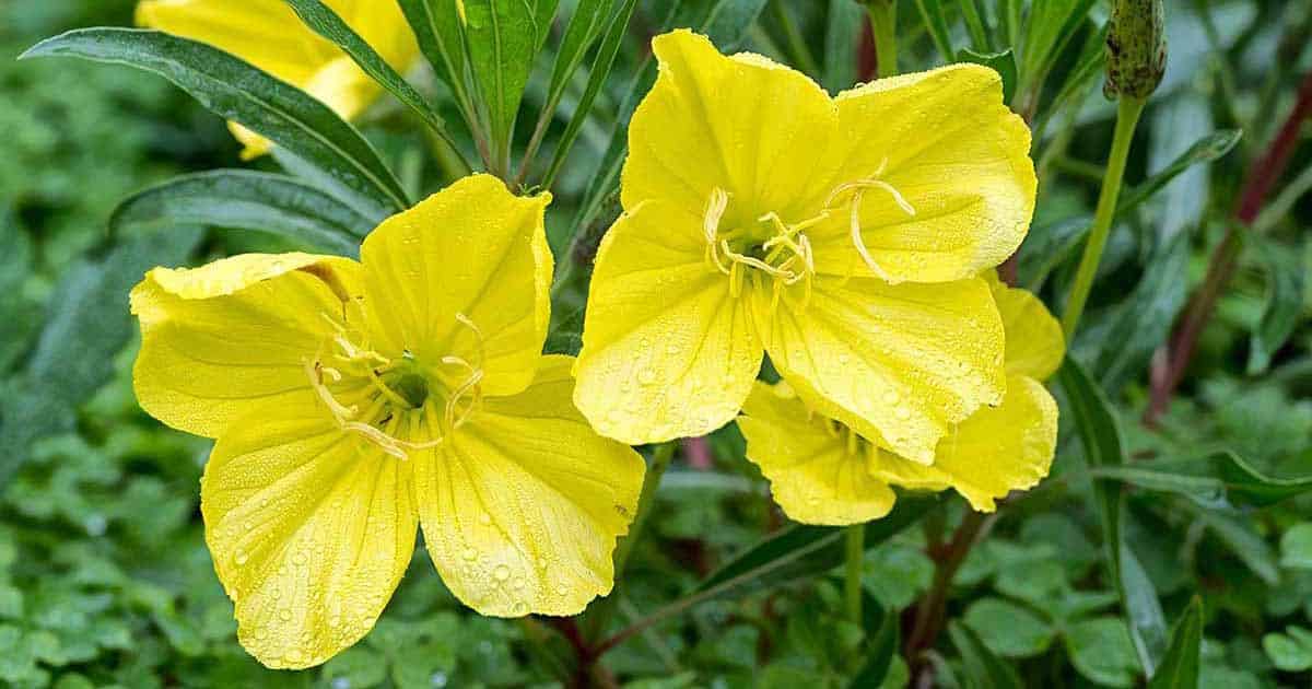 Evening Primrose is a yellow, cup-shaped flower that opens in the evening and is known for its soothing properties.