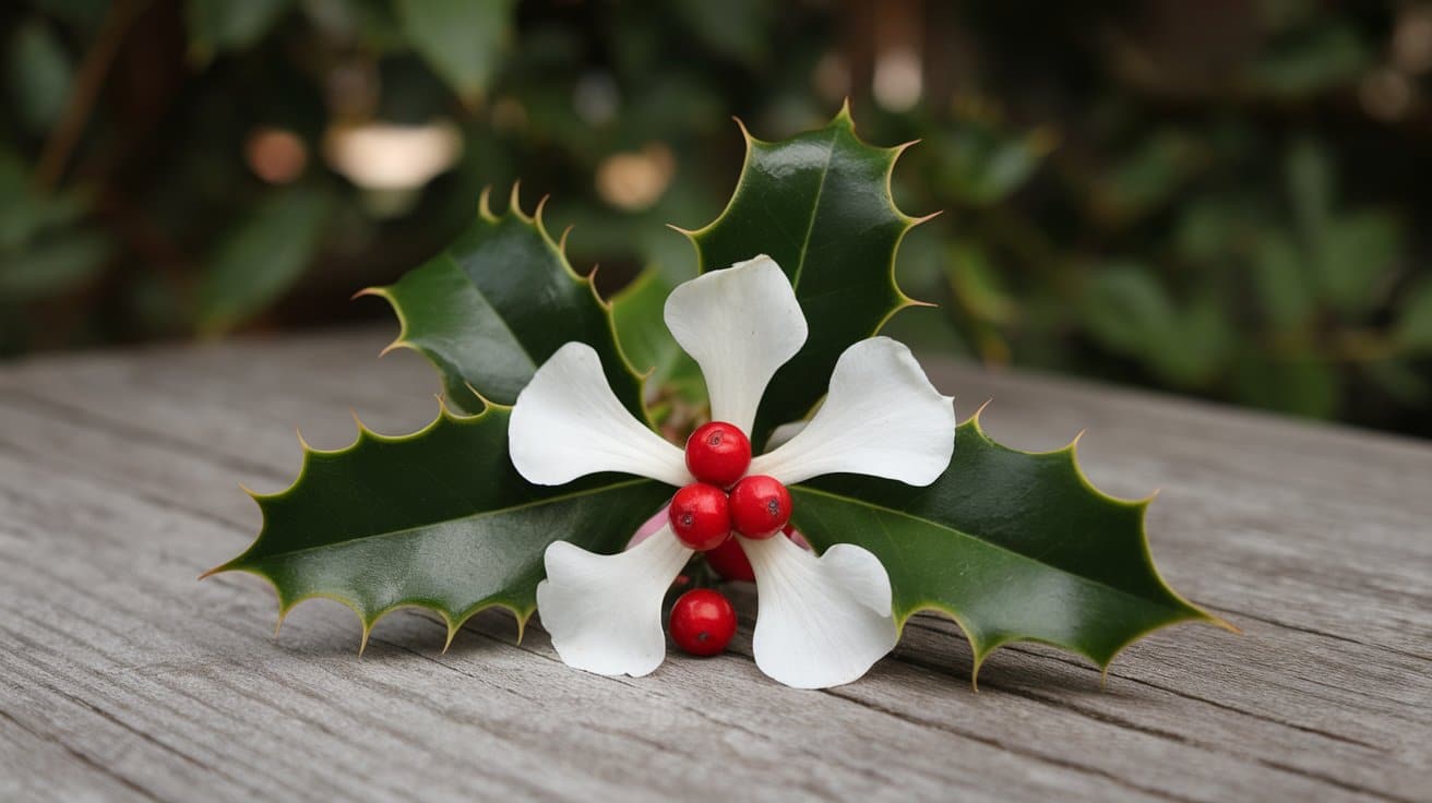 Holly is an evergreen plant with glossy, spiny leaves and bright red berries, commonly associated with Christmas.