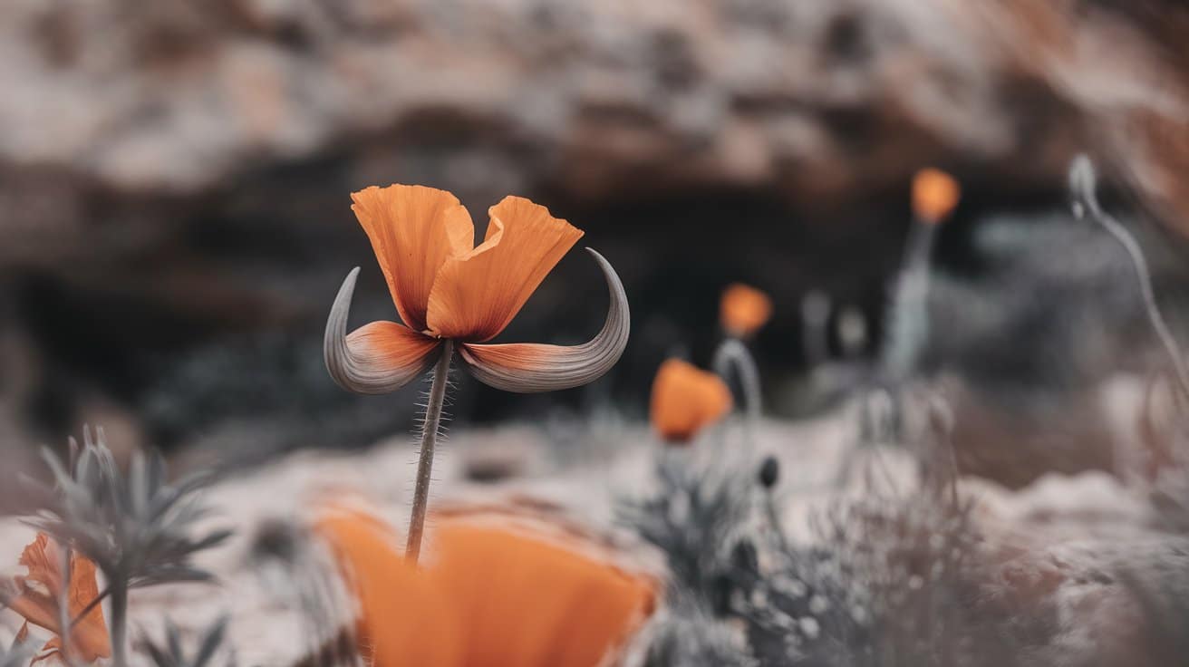 The Horned Poppy is characterized by its bright yellow or orange flowers and distinctive long, curved seed pods that resemble horns.