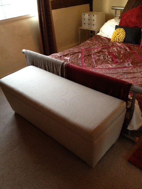 And to finish the whole look off, this stunning upholstered Richmond Blanket Box, from Feather and Black sits pride of place at the end of our (old) bed.