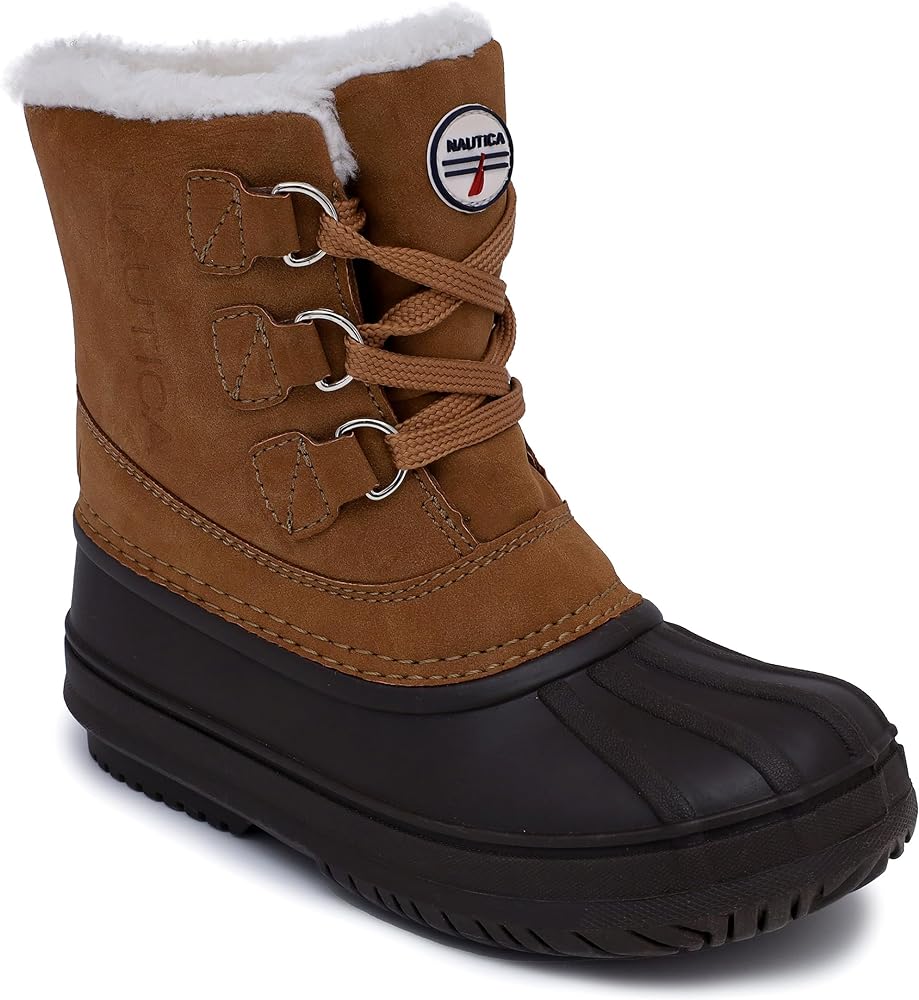Nautica: the vegan suede and sherpa fur snow boots are the perfect blend of comfort, warmth, and style for your little ones during chilly winter months. Crafted with a rubber sole, these snow boots provide excellent traction, ensuring your child’s safety while playing or walking on slippery surfaces.