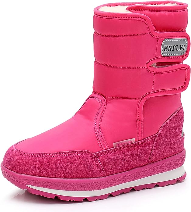 DADAWEN is a unisex kids’ snow boot crafted with 100% synthetic materials and featuring a rubber sole for excellent durability. With a calf-high shaft, it offers ample protection from external weather conditions. The boot is designed to be waterproof, thanks to its water-resistant textile upper and synthetic toe cap that prevents collisions.