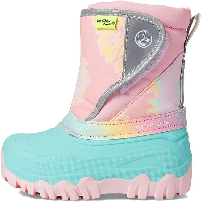 Western Chef snow boots are designed with impeccable detailing and are available in tie-dye, olive, and black colors, providing an option to choose based on your kid’s liking. The snow boot features a synthetic upper, textile lining, and textile insole, ensuring both style and comfort.