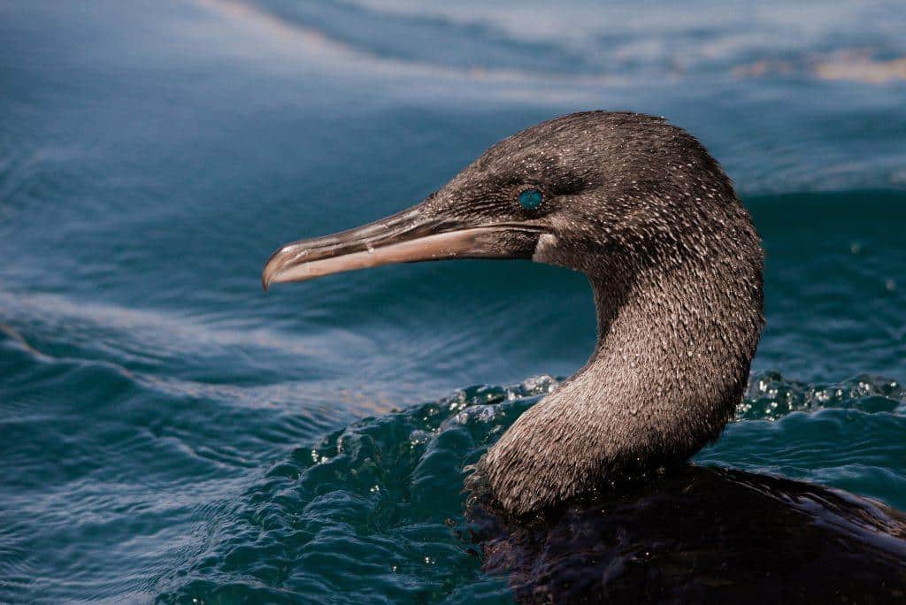 The Flightless Cormorant has vestigial wings too small for flight but uses strong legs and webbed feet to swim. It’s one of the rarest cormorant species. It is known for its excellent diving skills while foraging underwater.