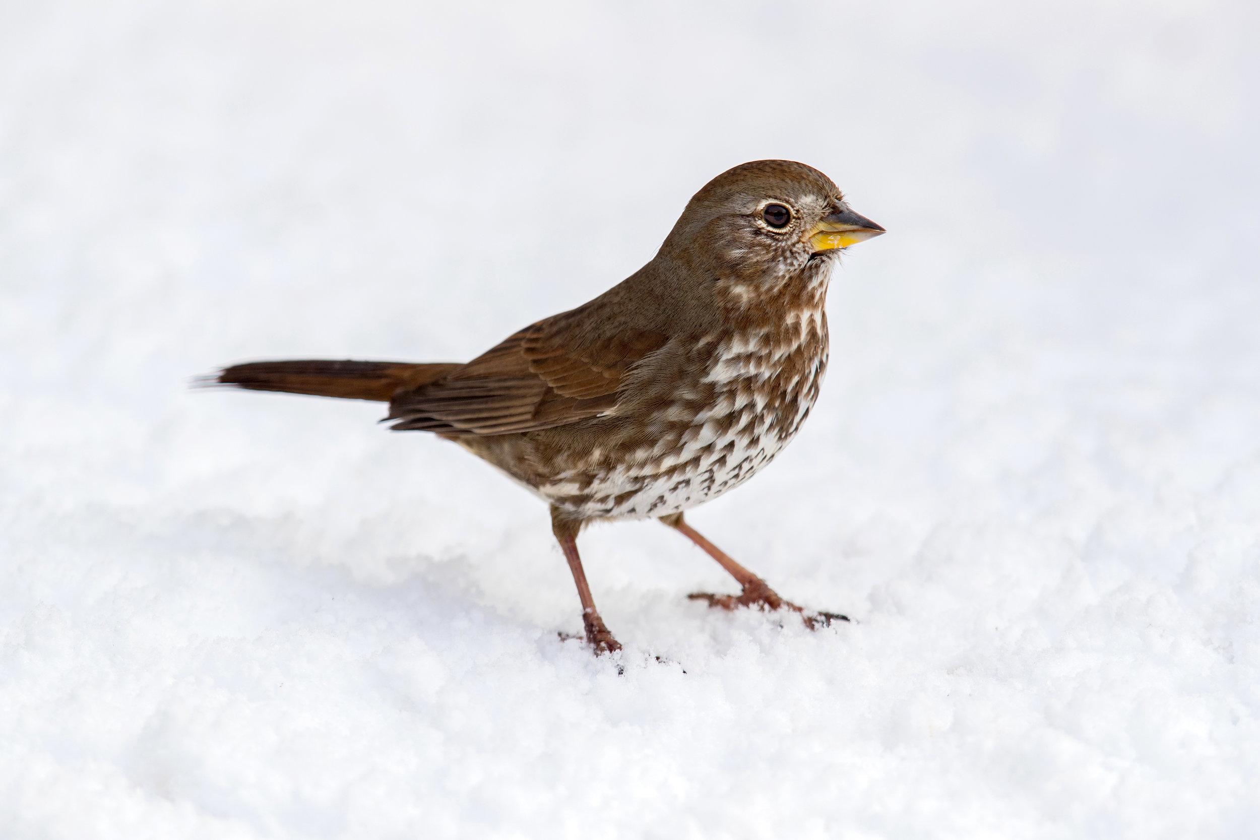Fox Sparrows are large, chunky sparrows with reddish-brown plumage and spotted chests. They forage by kicking leaf litter with both feet. These secretive birds are usually spotted alone or in small groups.