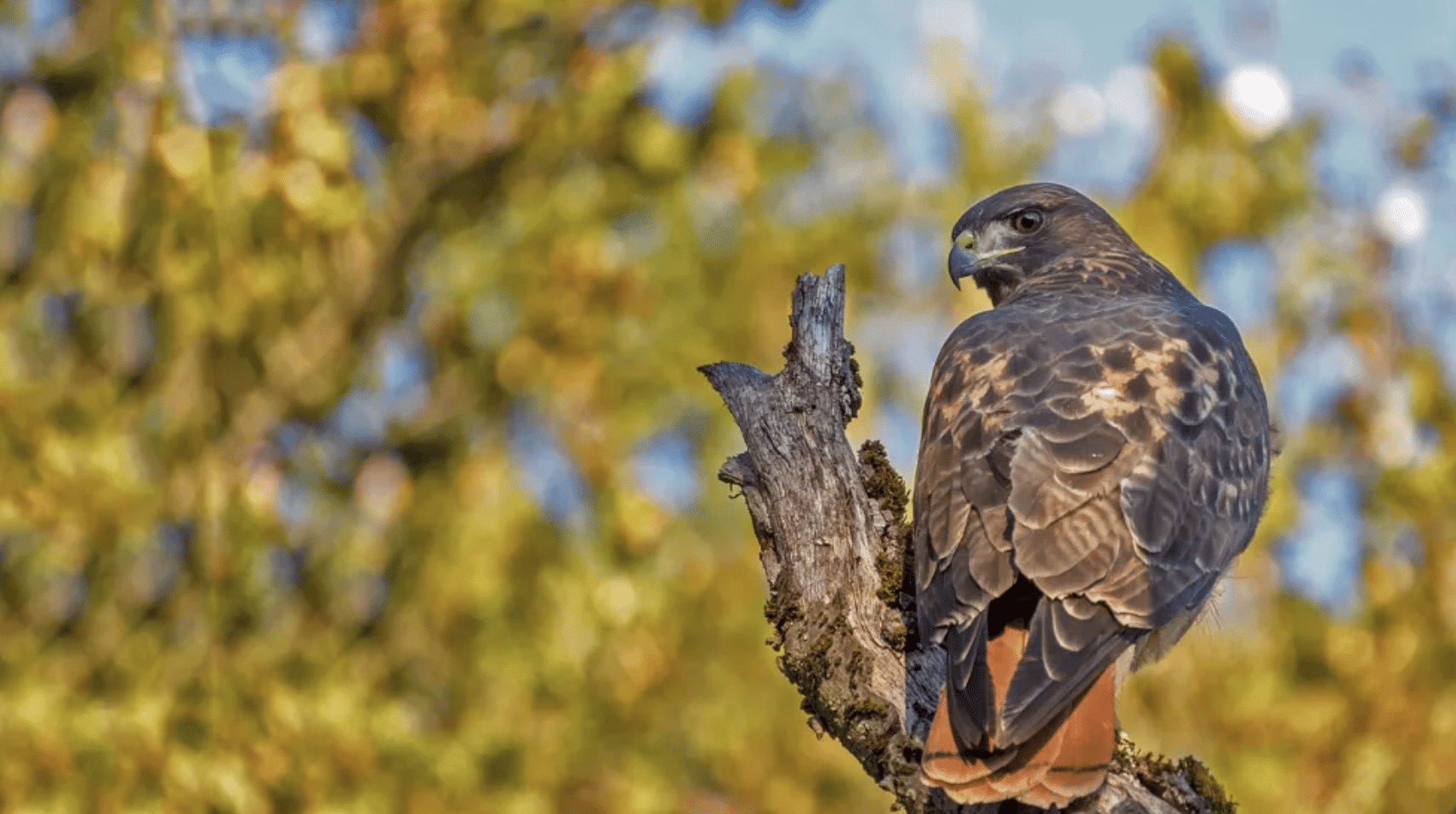 A large raptor about 45–60 cm long with a broad, rounded tail that’s brick-red above. It’s one of the most common hawks in North America.