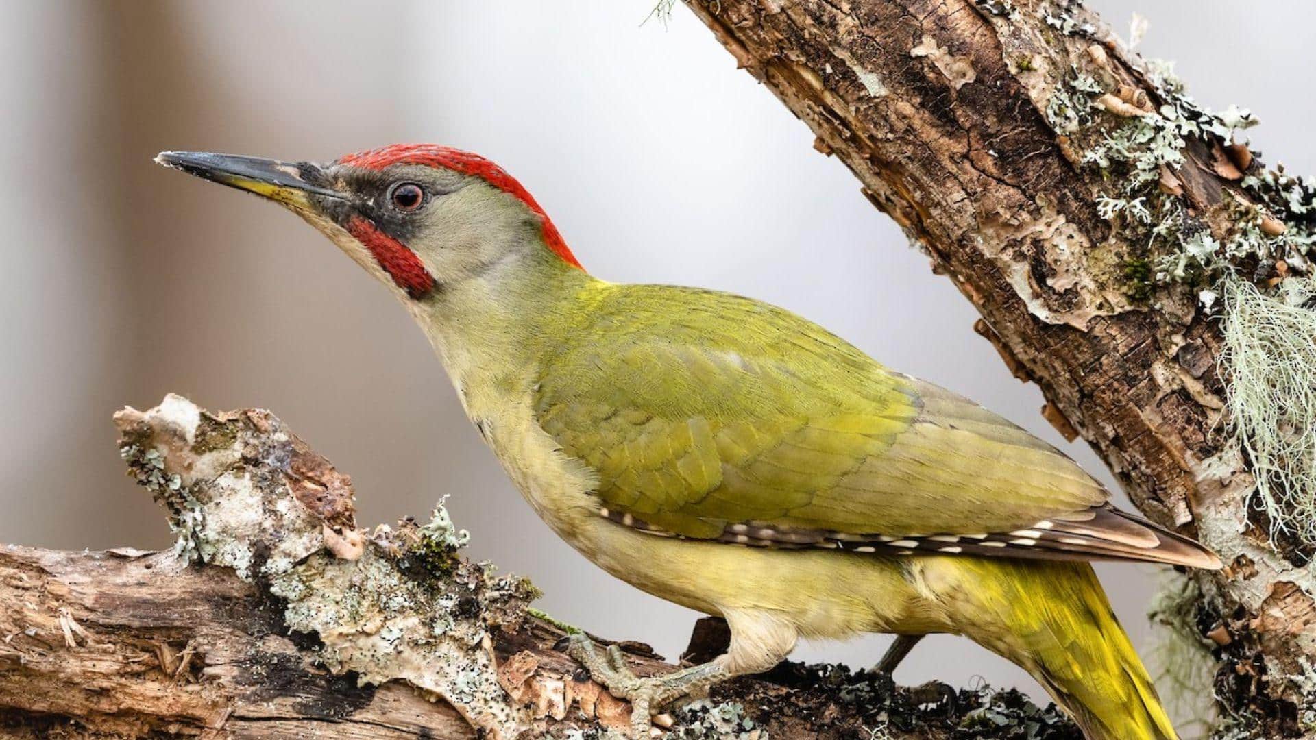 Iberian Green Woodpeckers are particularly skilled at extracting ants and termites from tree bark using their long, sticky tongues. Their distinct call sounds like a loud, laughing “ki-ki-ki.”