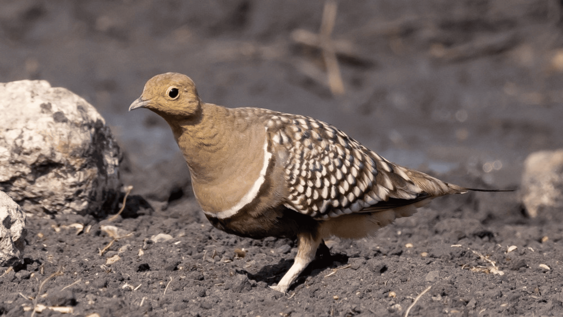 The Namaqua Sandgrouse is a medium-sized ground-dwelling bird measuring about 28-30 cm (11-12 inches) in length.