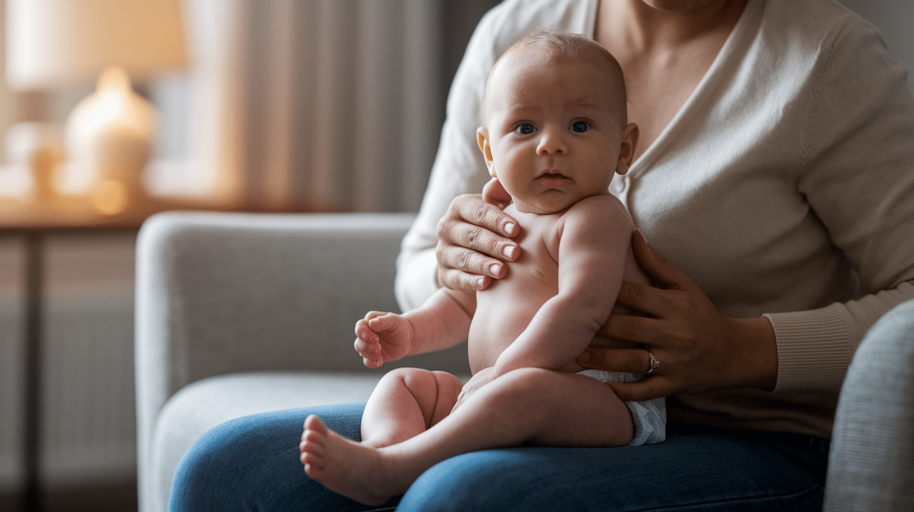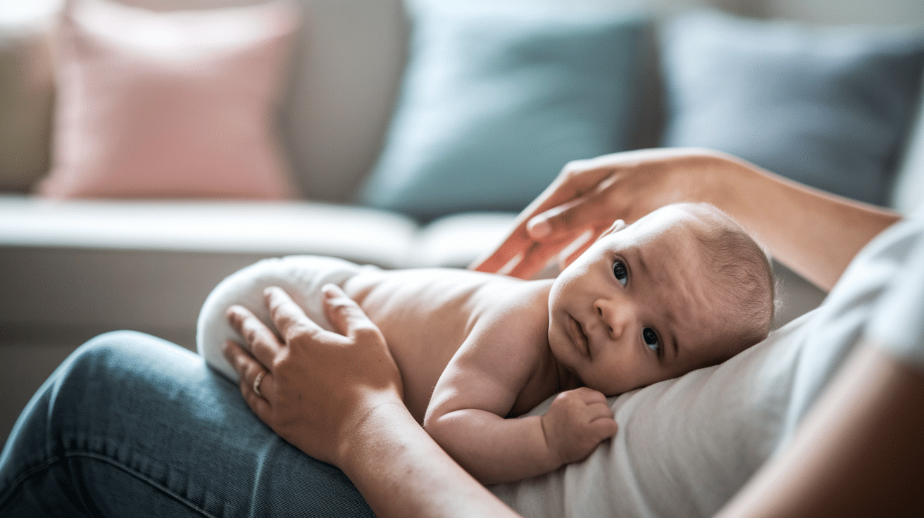 This position uses gravity to help move air bubbles. It’s great for babies who don’t burp easily in upright positions. The gentle pressure of your legs against their tummy provides extra help.