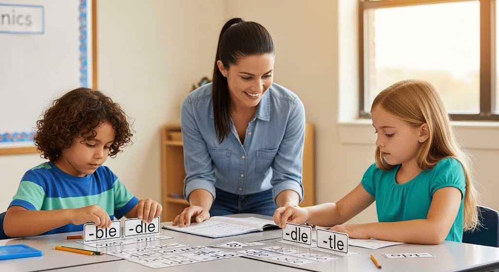 Give students a group of consonant-le words. Have them sort the words by endings like -ble, -dle, -tle, and -ple. Sorting helps students notice patterns.