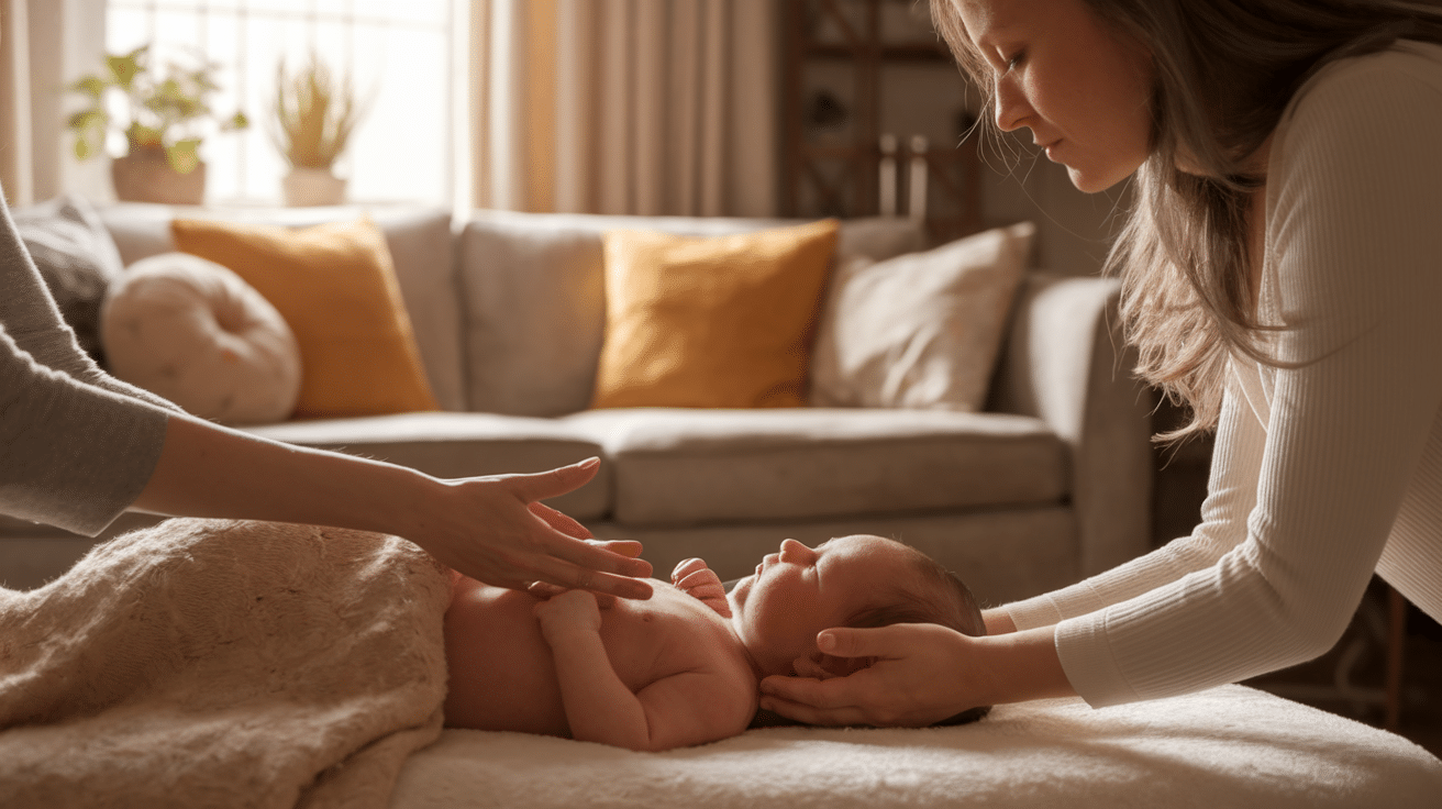 The therapist may gently hold the baby’s head or sacrum while encouraging deep relaxation. It helps the baby feel safer and more settled.