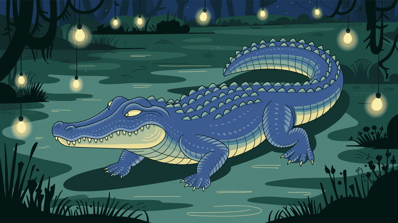 Reference: A hidden and swift alligator, striking like a veil in the night.