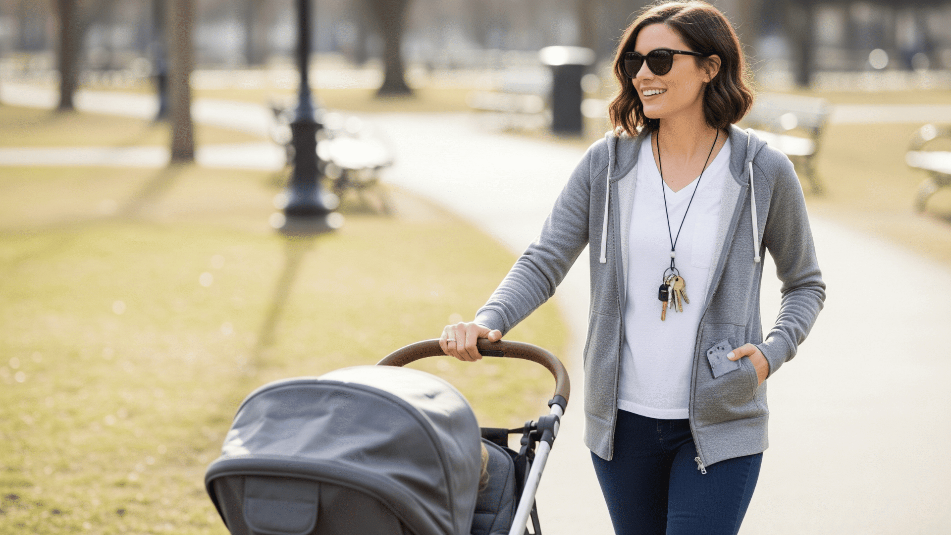 Skip delicate jewelry and opt for a zip-up hoodie with pockets for snacks, phones, and tiny treasures your kids will inevitably hand you.