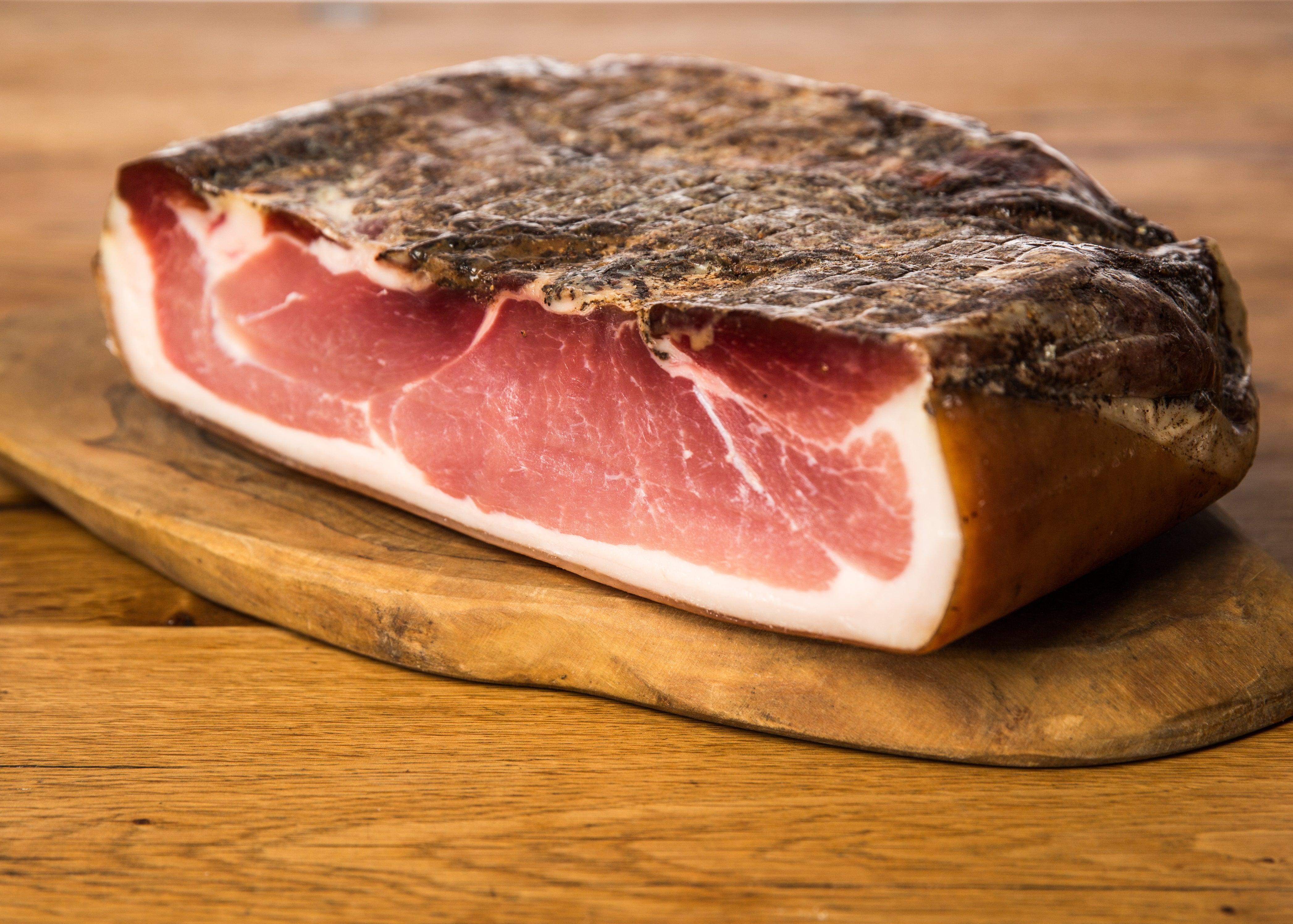 Its texture is leaner and firmer than prosciutto but has a slightly sweet flavor.
