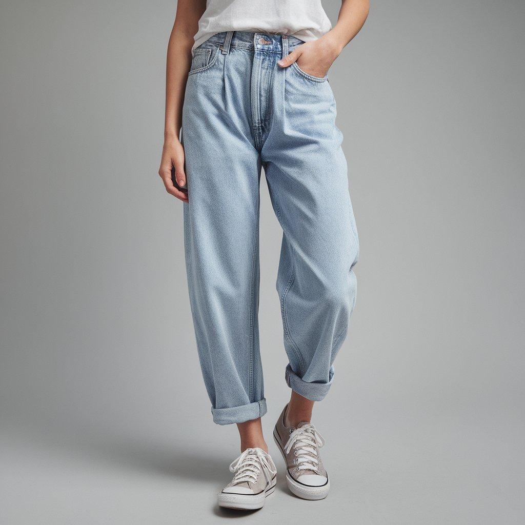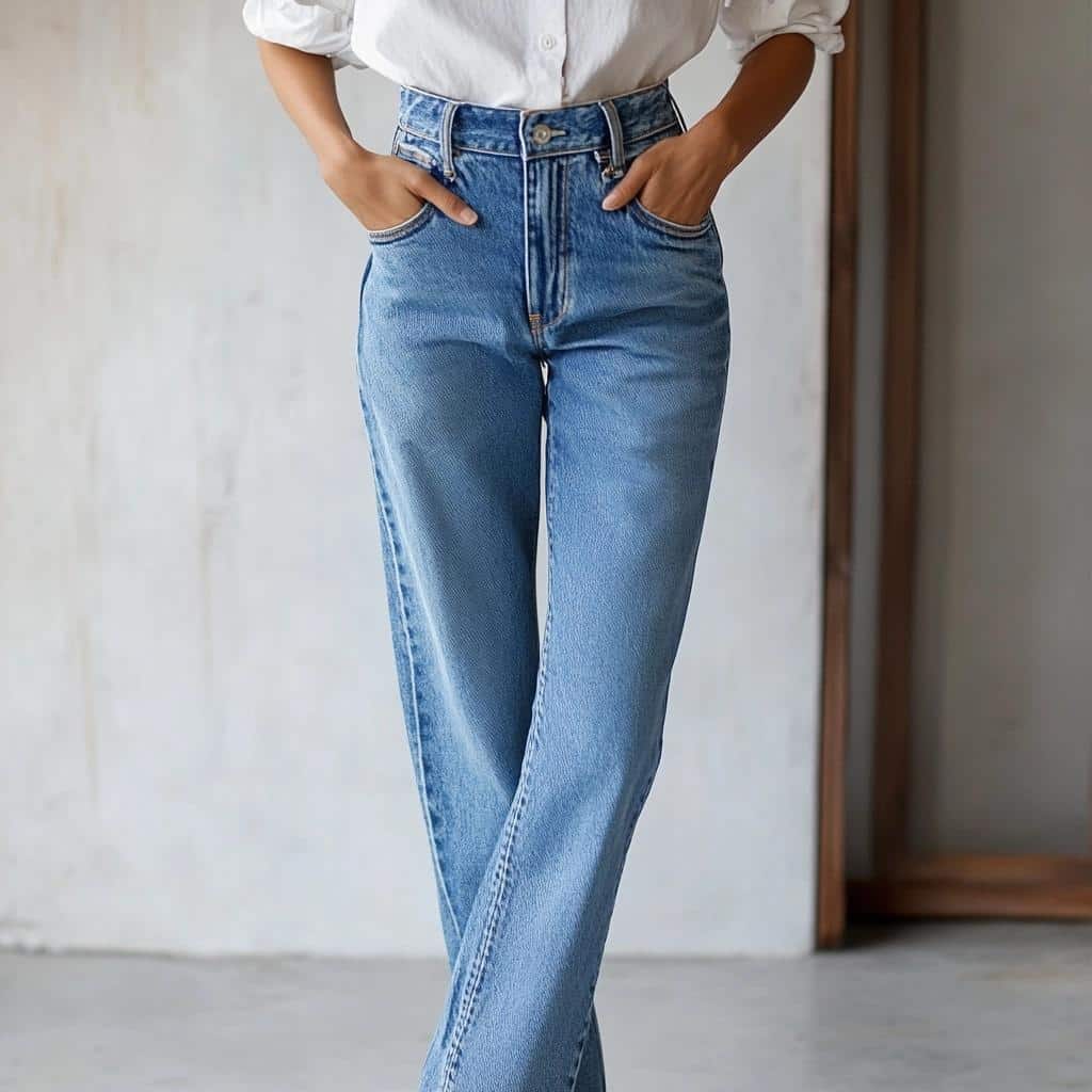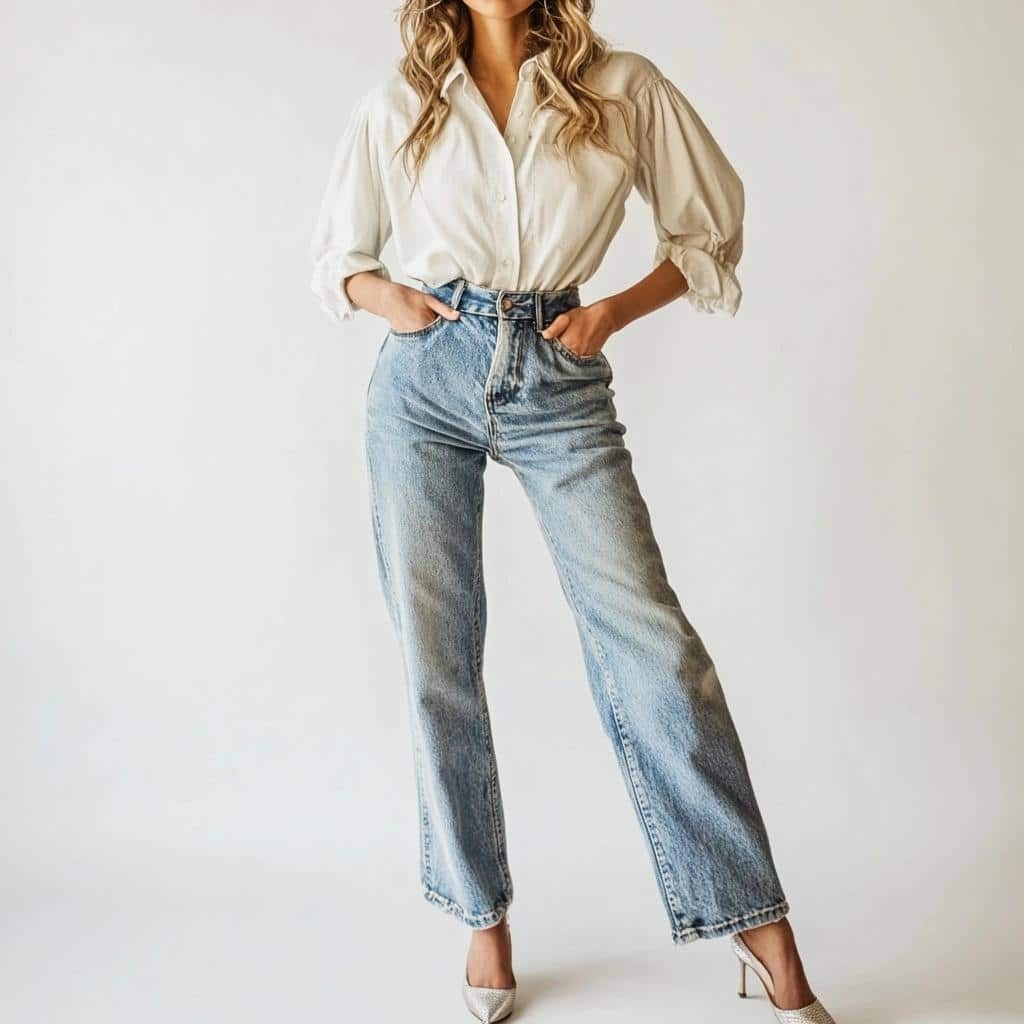 - Styling Tip: Tuck in a fitted top or blouse to define the waist. Pair with heeled boots or sandals to balance the volume of the legs. Keep the look minimal to let the jeans stand out.