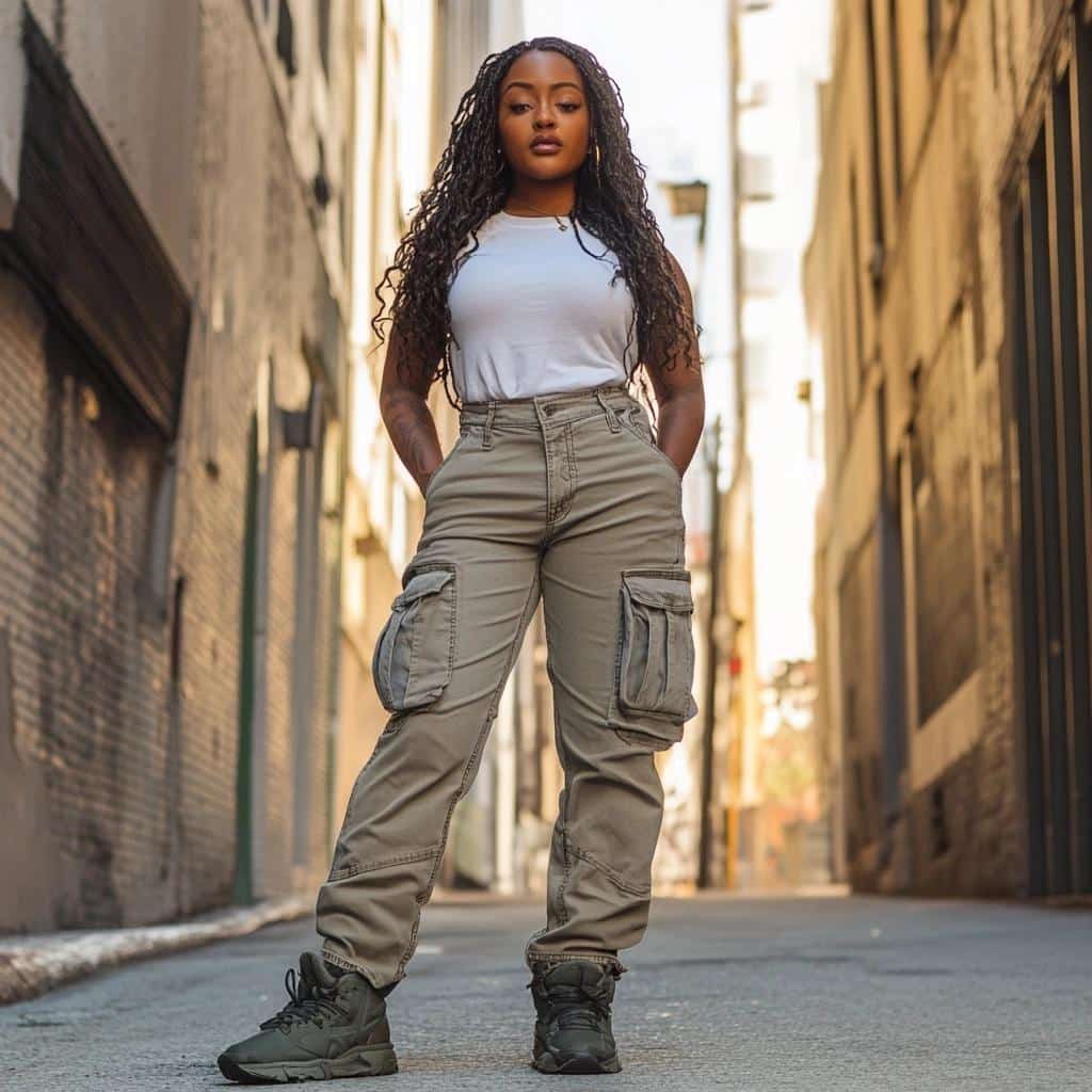 - Styling Tip: Pair with a simple t-shirt or crop top to keep the focus on the cargo details. Sneakers or combat boots complement the rugged style. Add a utility jacket or hoodie for a cohesive, casual look.