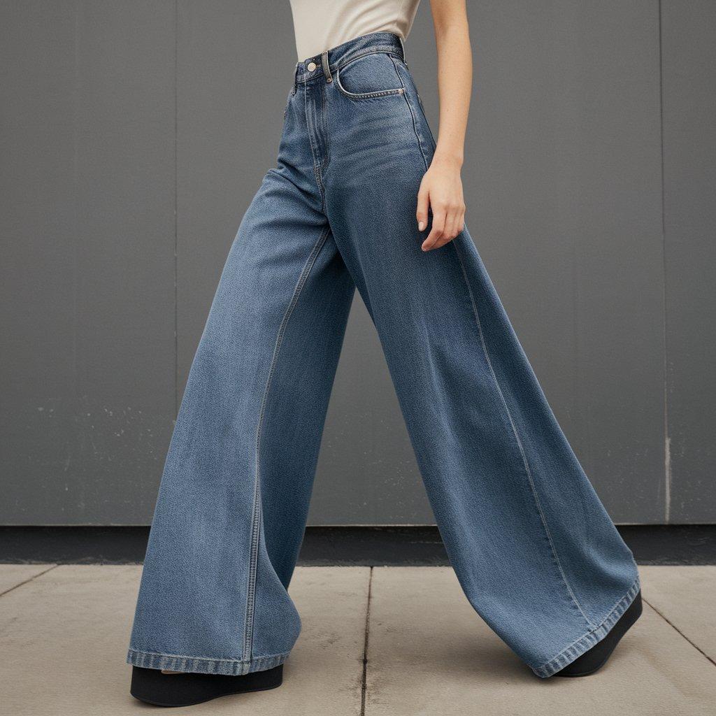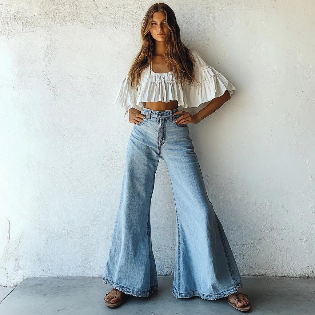- Styling Tip: Pair with platform shoes or heels to elevate the look and prevent the jeans from dragging. Opt for a slim or cropped top to keep the outfit balanced. A long, tailored coat or oversized jacket can add extra flair.