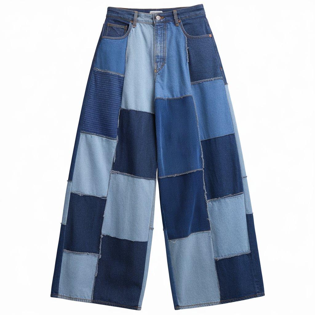 - Fit: Typically a loose or relaxed fit, with different fabric patches sewn into the denim for a creative, eclectic look.
