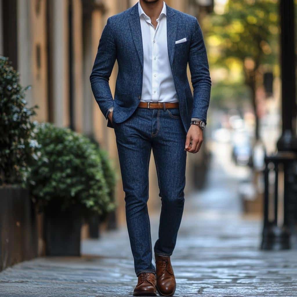 - Occasions: Ideal for semi-casual or smart-casual occasions, offering a unique twist to regular denim.