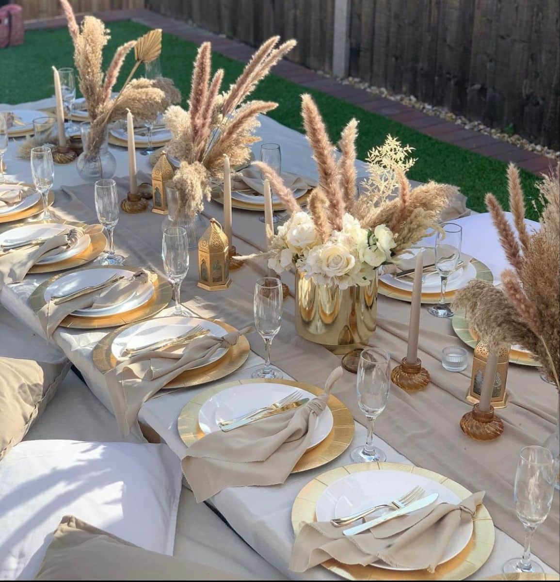 To show off your boho creativity, you can place centerpieces at every table in the venue. Centerpieces are classic elements that can instantly make the party theme look more vibrant and eye-catching. Therefore, you can consider doing some DIY pieces to give a personal touch to the ambiance and grab everyone’s attention at the party. You can DIY jars containing marble stones or wildflowers. Moreover, you can also make scented candles to lighten up the atmosphere if you are hosting a party at night.