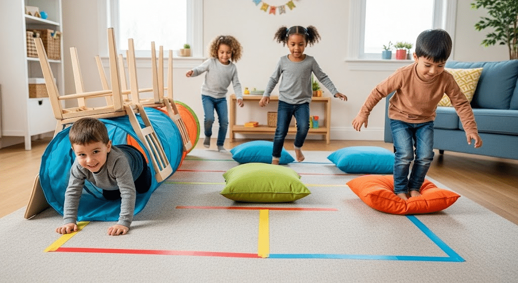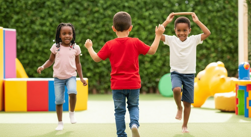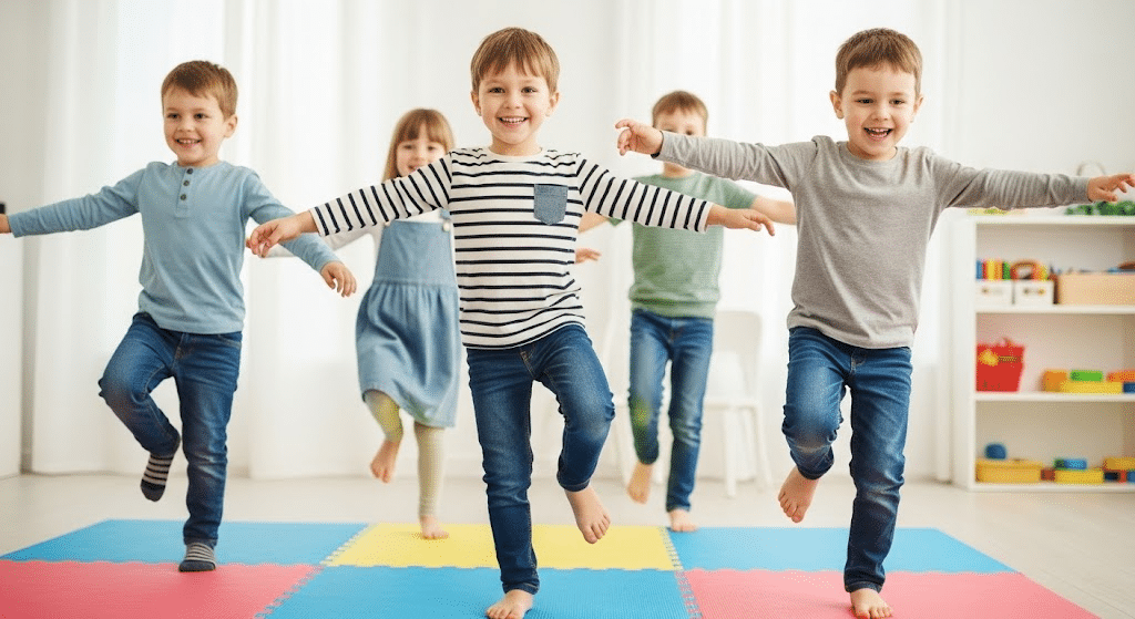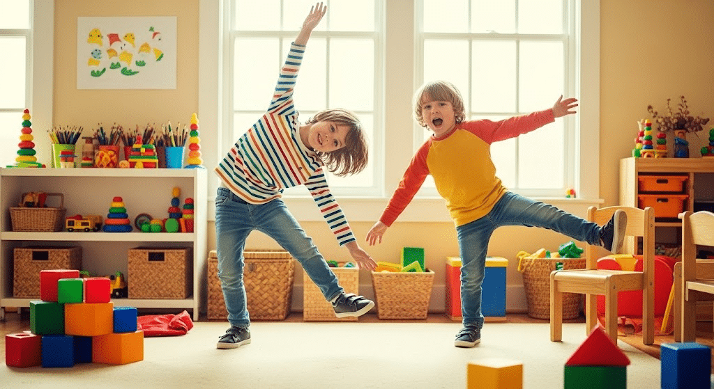 It’s a fun mix of chaos and control, helping kids practice body awareness and impulse management in a very playful setting.