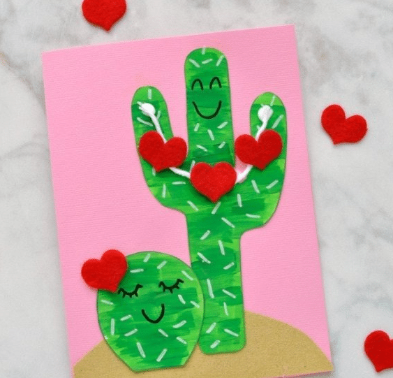 The good part is that there is no right or wrong way to sketch and color the cacti. It is a good card idea for kids to exchange for Valentine’s.