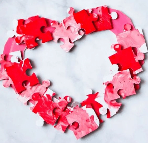 3. A Valentine’s Wreath Using Puzzle Pieces