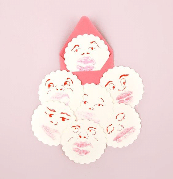 On the 14th of February, make Valentine’s Cards with kids using funny faces. First, draw a few circles. For scalloped edges, use a craft scissor. Next, apply lipstick on the lips of your kids and let them kiss each circle. Once the lips are made, let them draw the eyes and nose. The eyes can be creatively made to create funny faces. Now, use a pen to write lovey-dovey notes behind the circles.