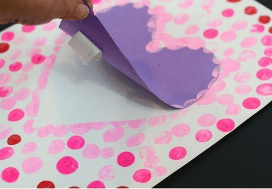 Get a red or pink ink pad and let kids dip their thumbs deep into the pads for thumbprints on a cardstock. To make this activity even more interesting, use a shape to get the desired print on the card. For example, in the picture here, a heart-shaped paper has been used to get the shape correct with thumbprints. Use a thin felt pen to write a lovely message for the receiver.
